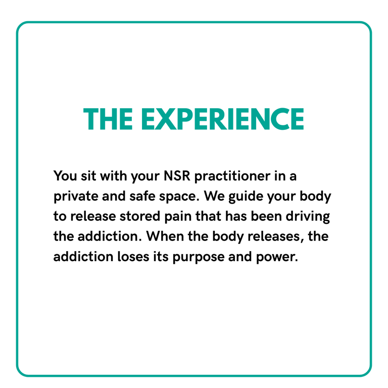 NSR Therapy releases the stored pain the addiction has been trying to numb.