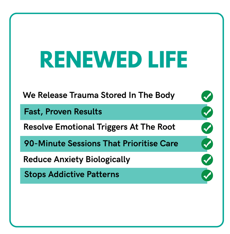 This is where NSR Practioner does what traditional therapy cannot. We guide your body to release the stored pain, fear and survival patterns directly from your nervous system. No talking in circles. No reliving trauma. Real release that creates real change.