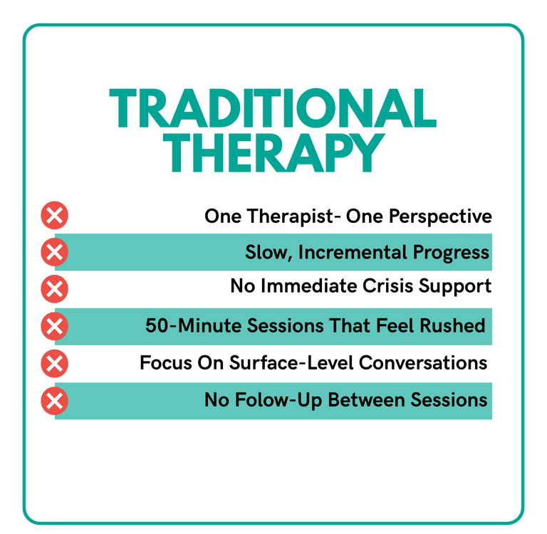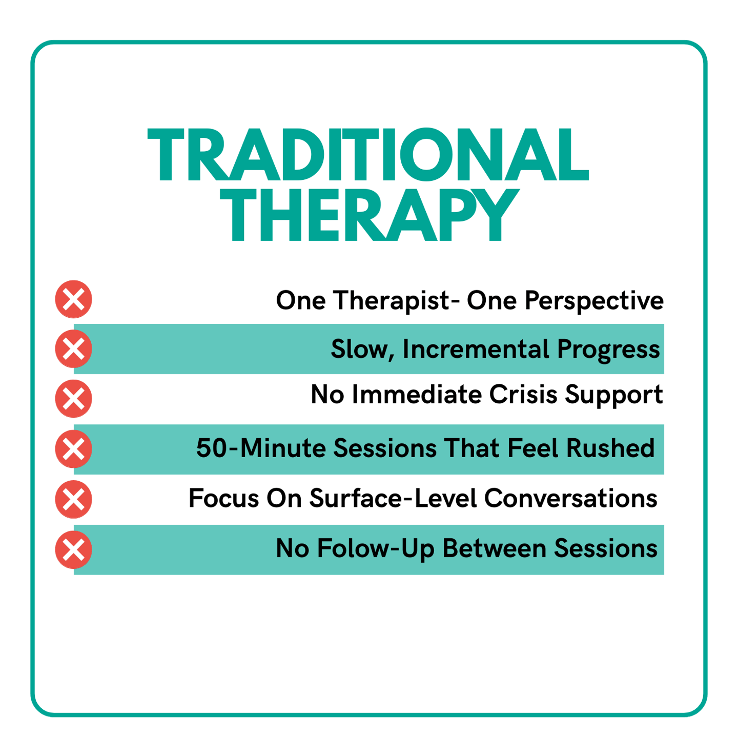 Most therapists will meet you once a week, listen to your challenges, and send you home to “think about it.”