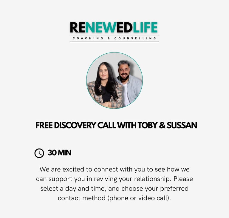 You don’t get one therapist you get two specialists. Women work directly with Sussan, men with Toby. This ensures each partner has a safe space to speak openly while both coaches work together behind the scenes to guide the relationship forward.